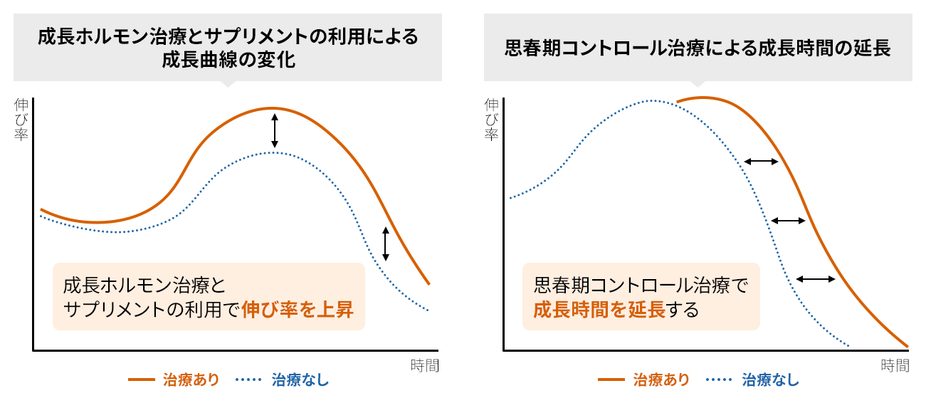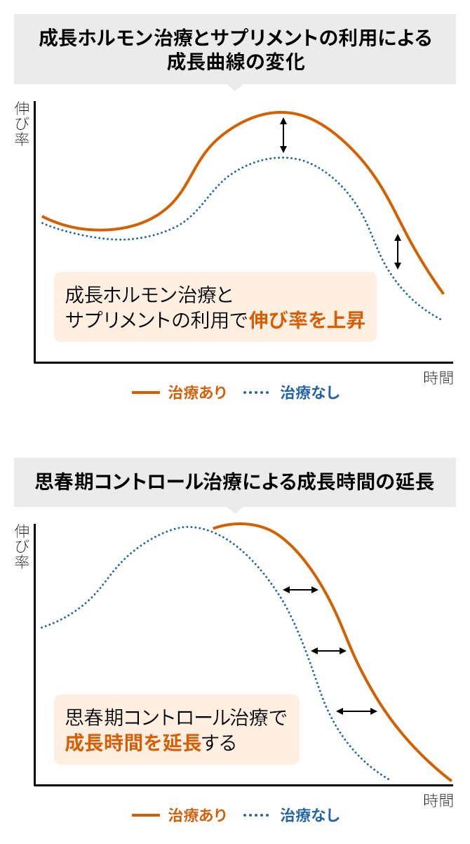 成長ホルモン・思春期コントロール・サプリメント・生活指導の治療効果を組み合わせながら効率的に面積のアップを図ります。